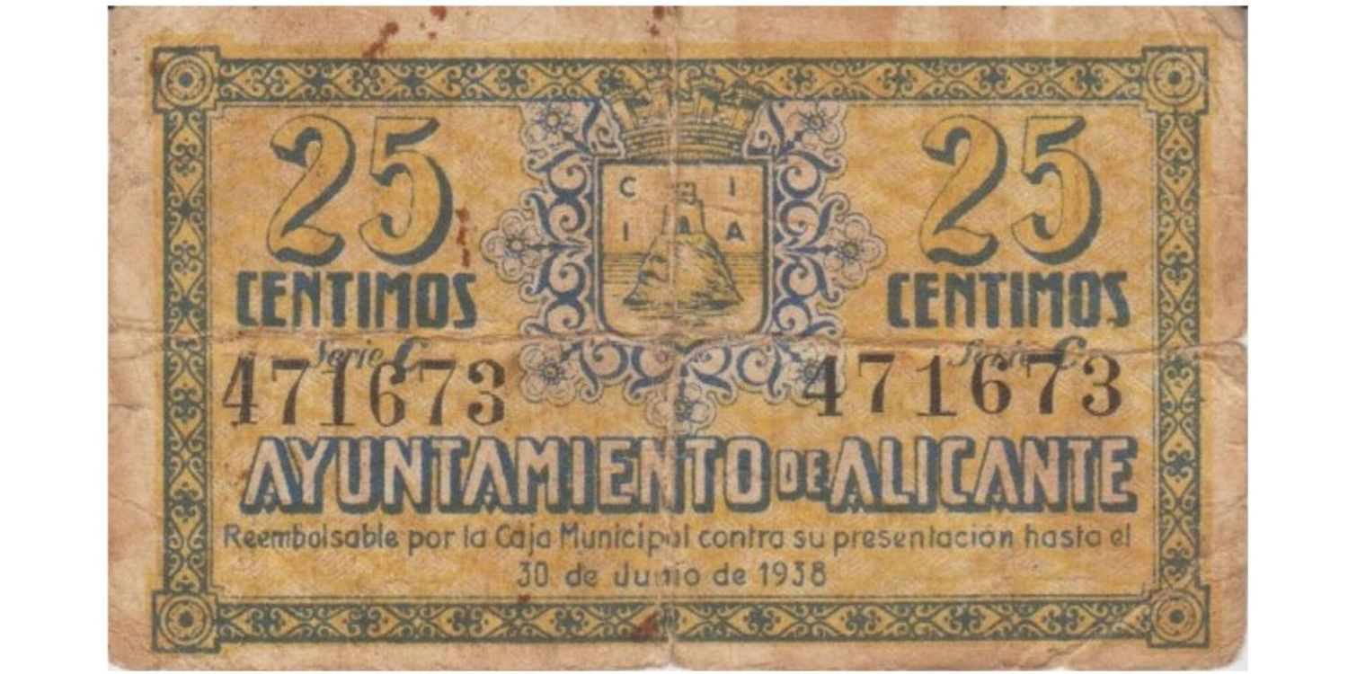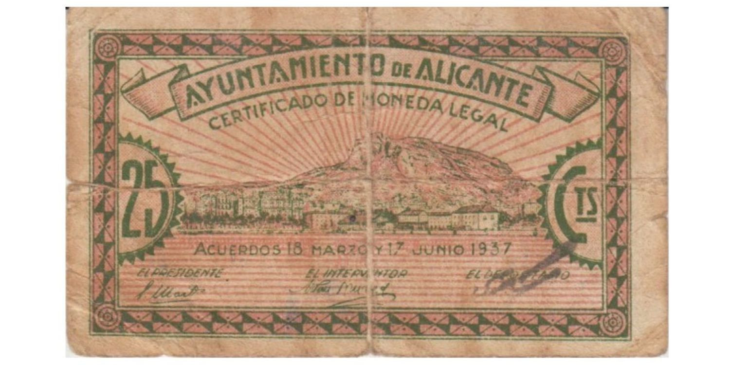 ALICANTE TOWN COUNCIL - 25 CENTS 30 June 1938 BC