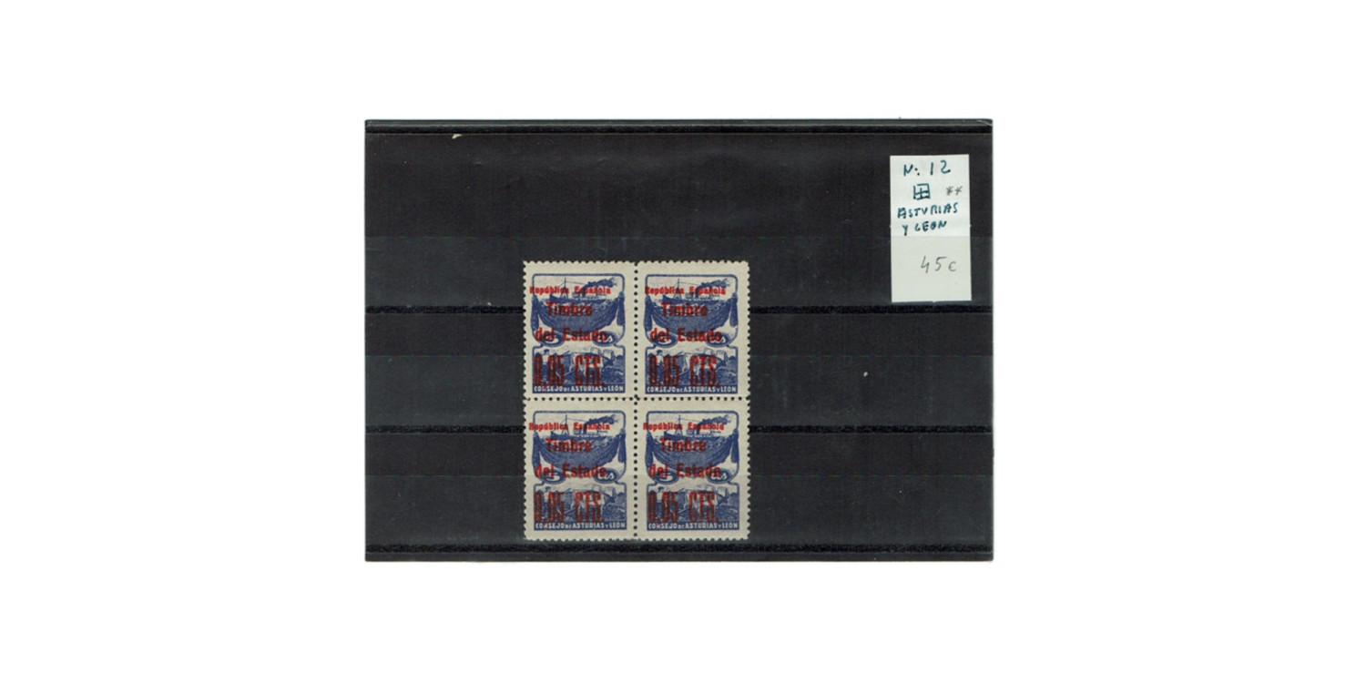 ASTURIAS Y LEON, 1937, No. 12* * block of four in new without hinges