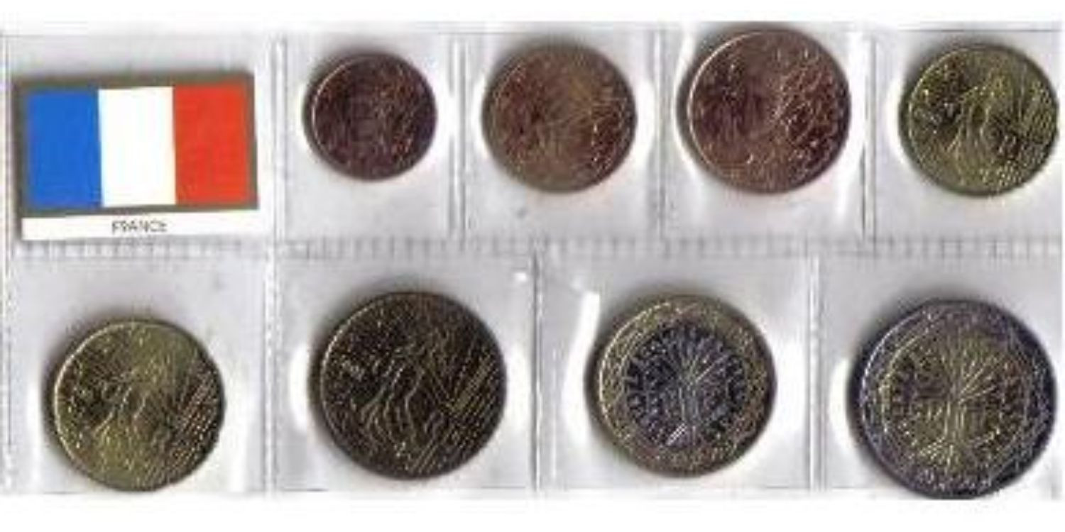 Series of France with the 8 coins in circulation for the year 2001