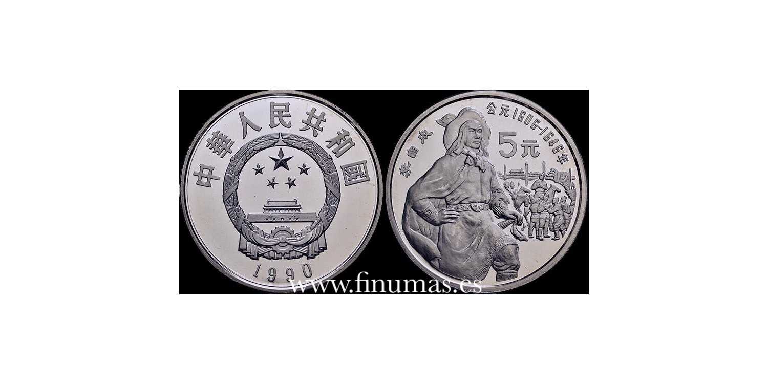 5 YUAN 1990 in proof quality. Silver (Ag) 22'22gm ø36mm KM# 310