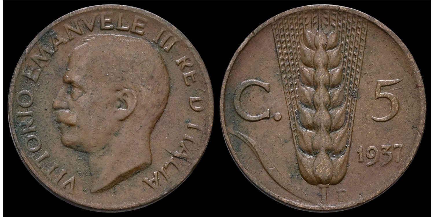 ITALIA - K-059- 5 CTm. 1937 - MBC+ - Cobre