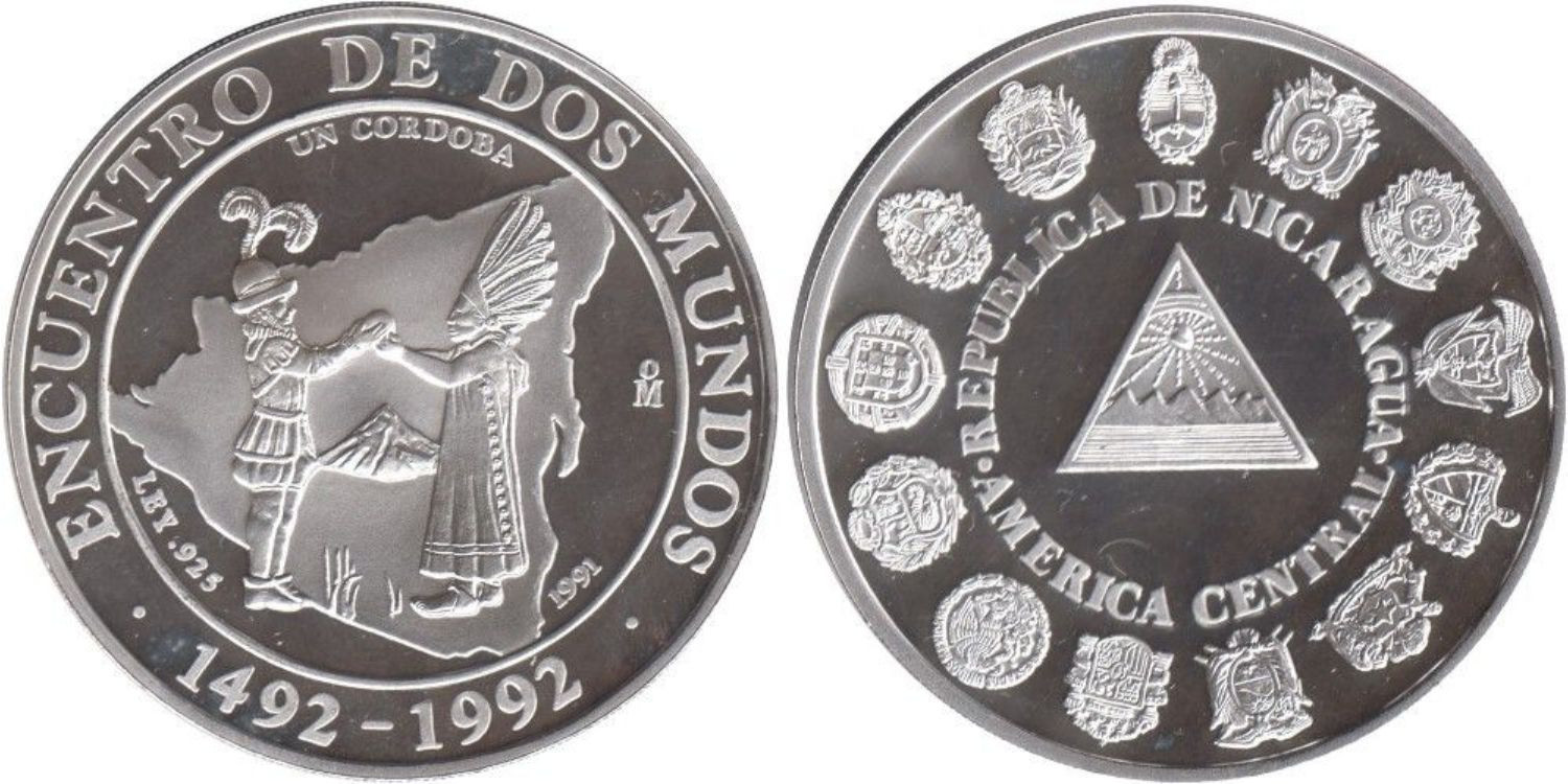 NICARAGUA - K-077 - 1 Cordoba 1991, Proof silver