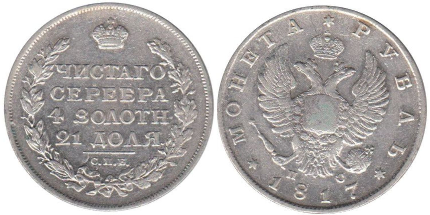 RUSSIA - EMPIRE - K-130 - 1 RUBLO 1817 , MBC+ silver