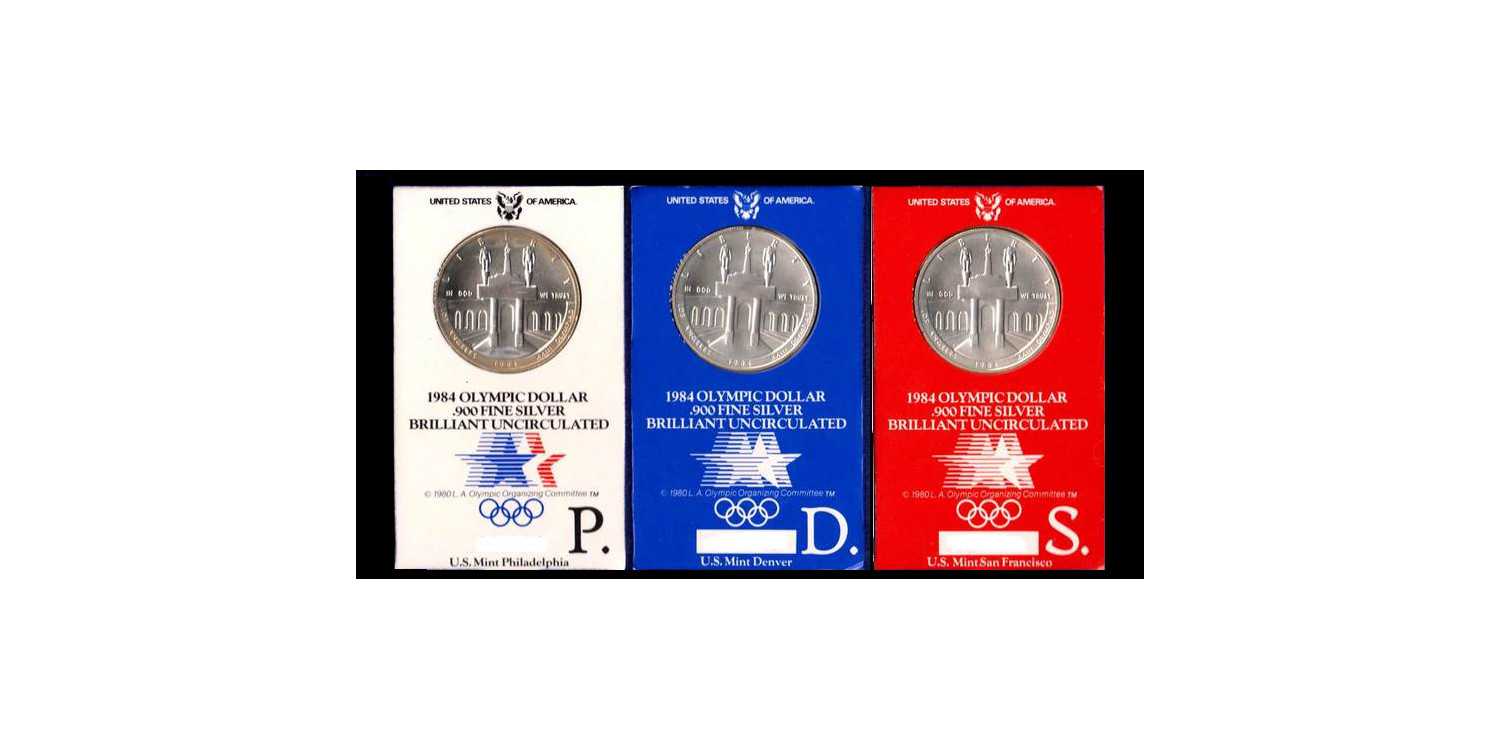 UNITED STATES. Official Set 3x 1 DOLLAR 1984 P,D and S SILVER .Year: 1984 Metal: Silver Purity: 0.900 Weight: 26,73 Grams