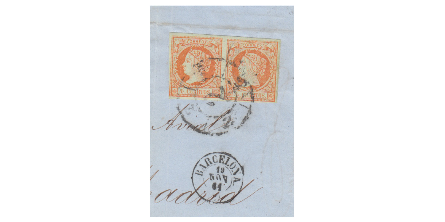 4 Quartos1860 Cartwheel No. 2 - Barcelona couple on fragment with dater