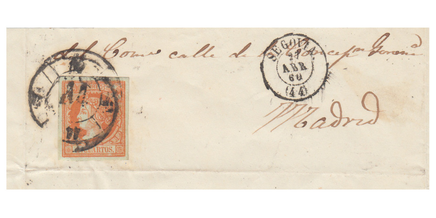 4 Quartos1860 - Cartwheel Nº44 - Segovia on cachet with date stamp