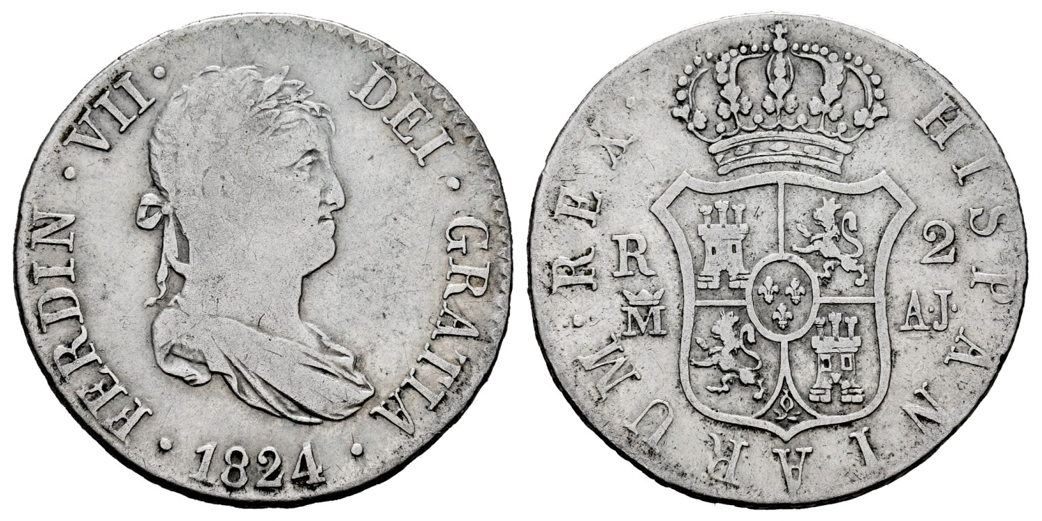 Cy14751.-FERNANDO VII - 2 Reales 1824 Sevilla A.J.- BC