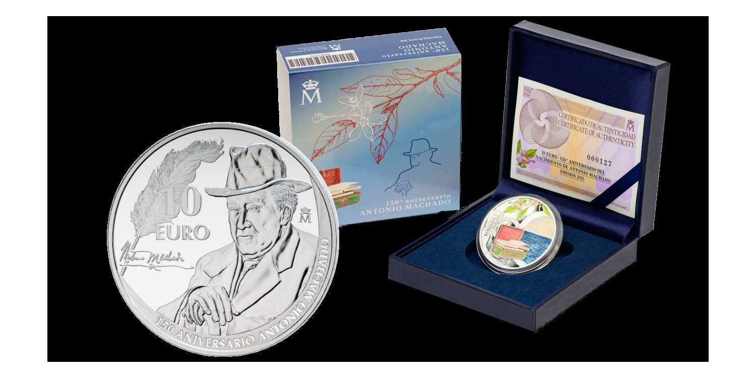 On the occasion of the 150th anniversary of the birth of Antonio Machado, the Fábrica Nacional de Moneda y Timbre-Real Casa de la Moneda is dedicating a collector's coin to this poet and playwright, a member of the so-called Generation of '98.