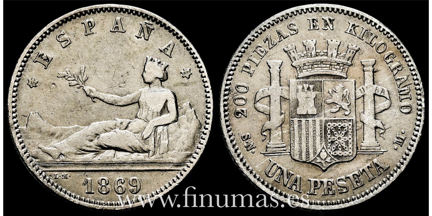 Cy16509D.- G.P. y REPUBLICA 1 Peseta 1869 España. S.N.M.- MBC -