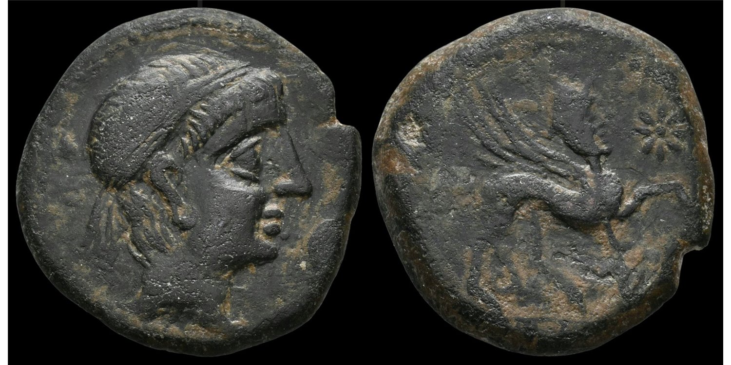 CASTULO (Cazlona, Jaén) As Bronce (Ae.) 11,62gm. 180 a.C. Anv: Cabeza masculina diademada a derecha. Rev: Esfinge a derecha, delante estrella y letra ibérica Co, debajo leyenda ibérica: CaSTeLE. MBC