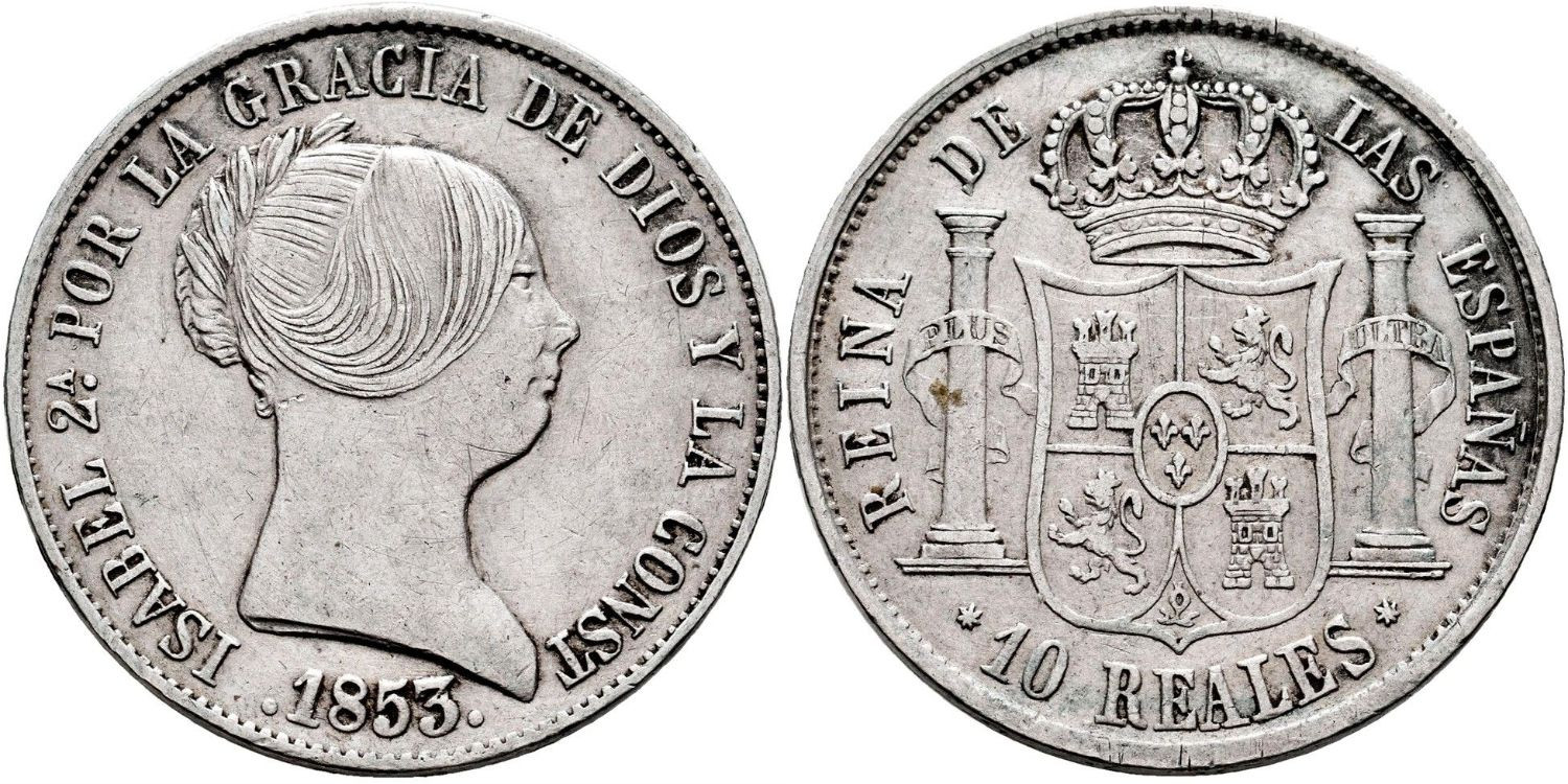 10 Reales 1853 on said 1852. Seville. Some soiling and Marquita. Ebc-
