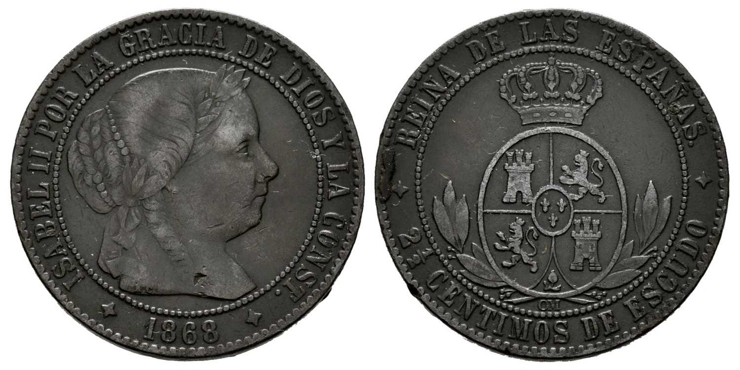 Cy15798.- ISABEL II - 2 1/2 Ctm. Coat of Arms 1868 Jubia . MBC+ MBC+