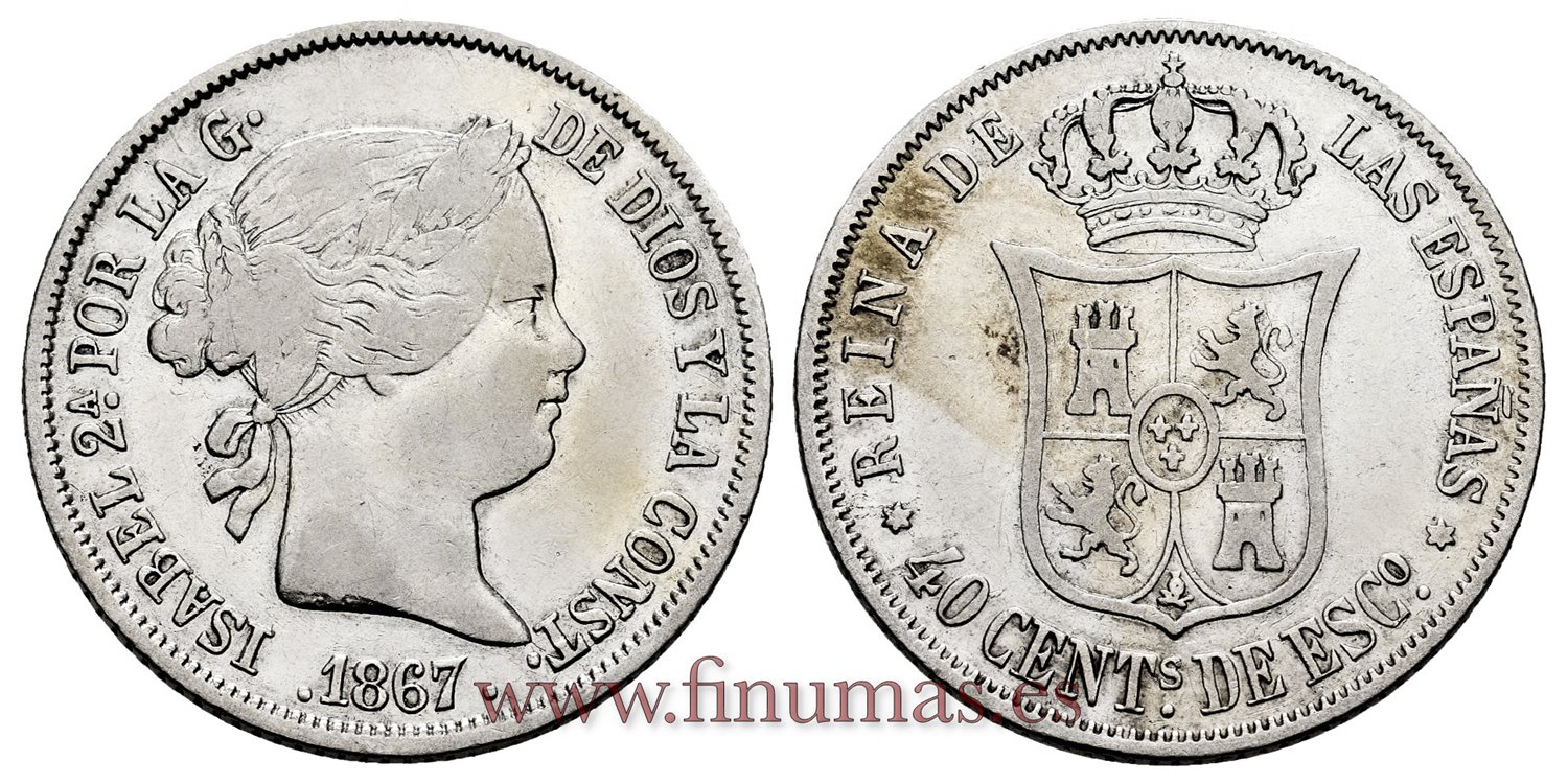Cy16173.- ISABEL II 40 Ctm.Escudo 1867 Madrid. PLATA - MBC