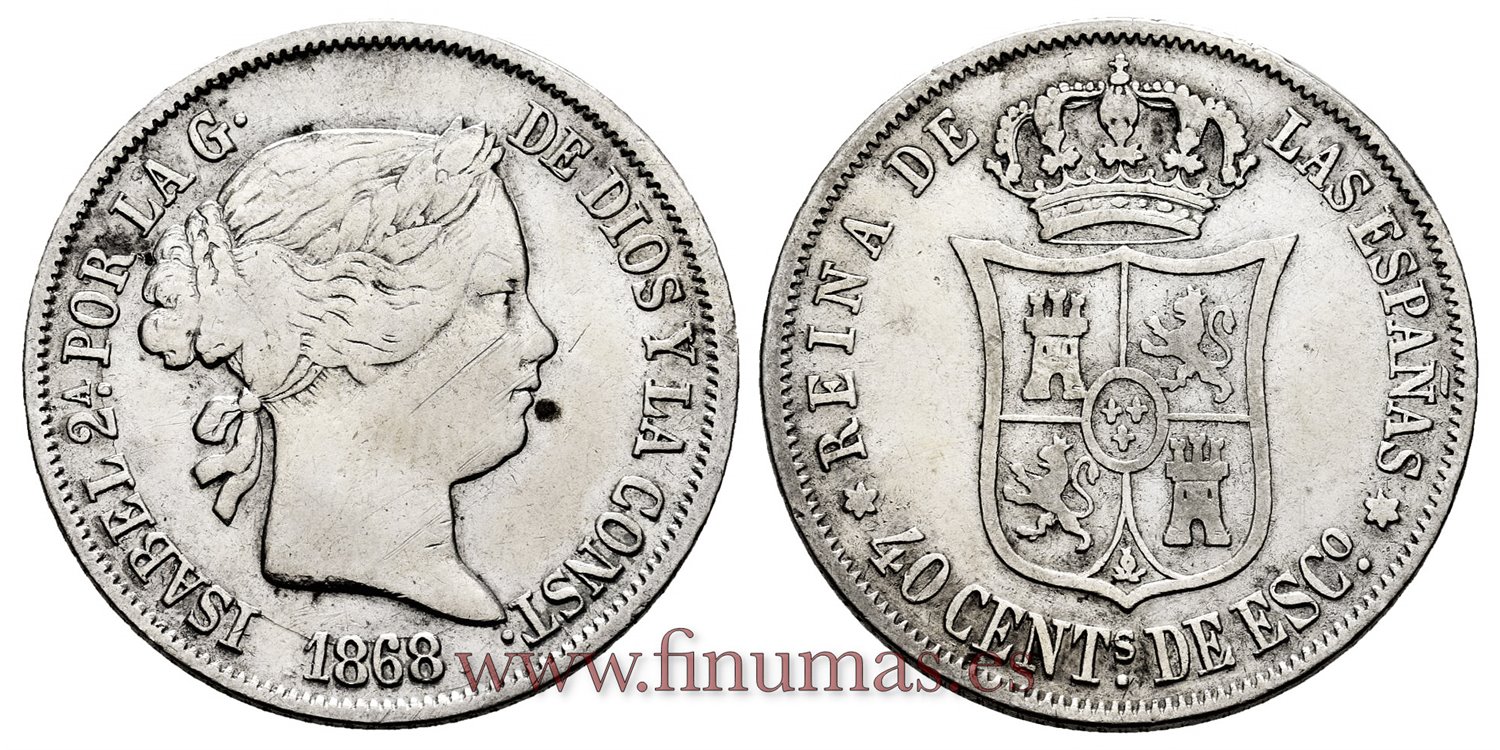 Cy16175.- ISABEL II 40 Ctm.Escudo 1868 Madrid. PLATA - MBC