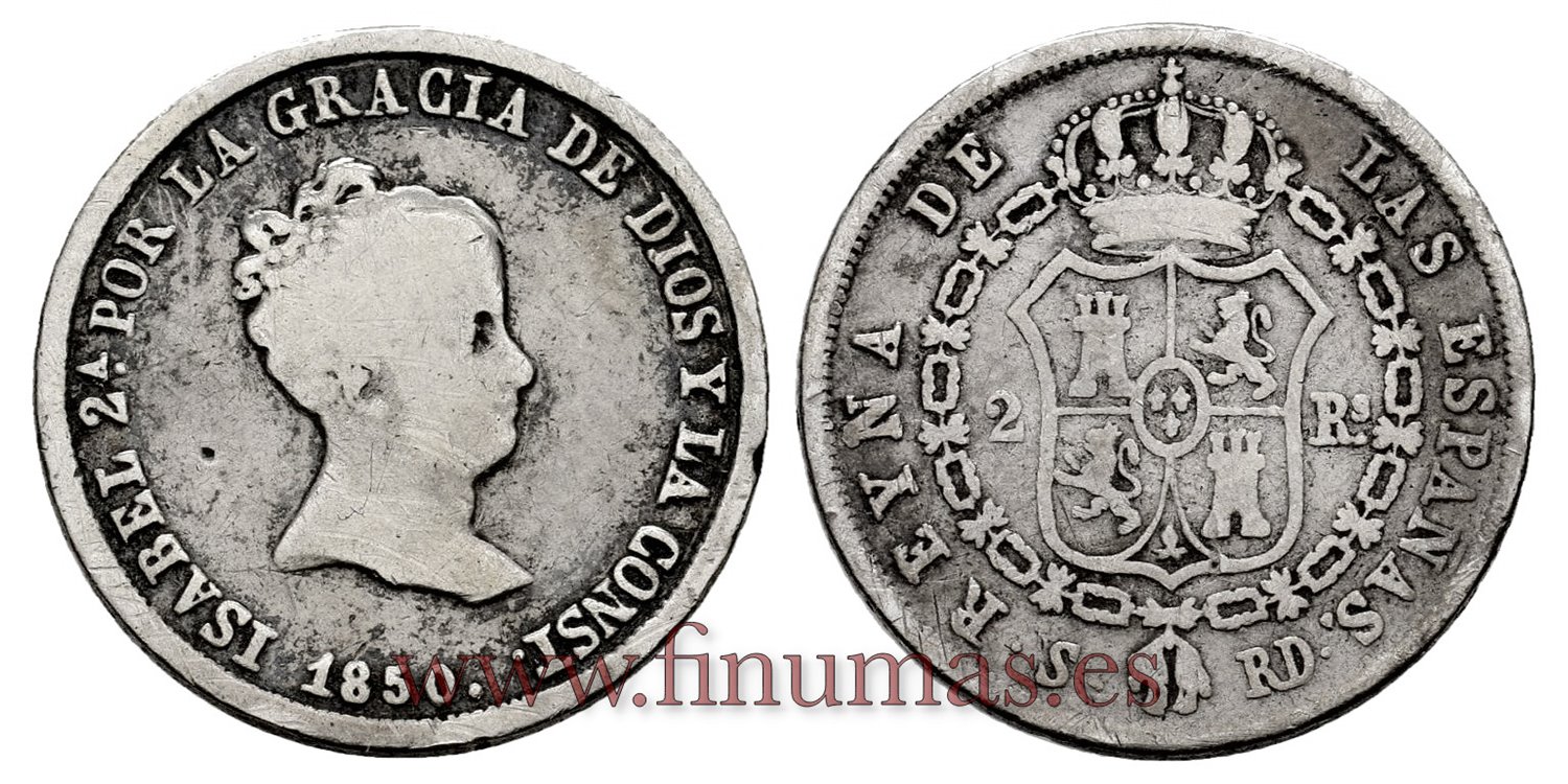 Cy15996-2.- ISABEL II 2 Reales 1850 Sevilla. PLATA RD - BC-
