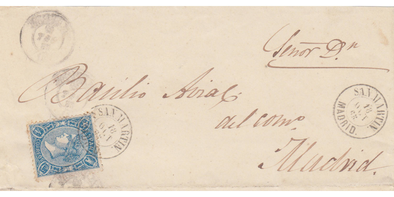 Nº0081 f3 - 4 quarters 1866, dater San Martin / Madrid on front cover