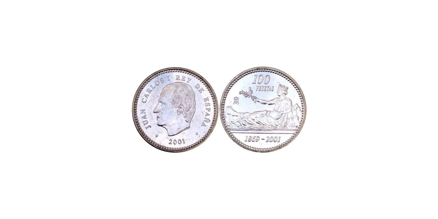 100 pts YEAR 2001 Without CircularJ.Carlos Special issue of the FNMT. Minted in silver using the original dies. Silver (Ag) .925mm