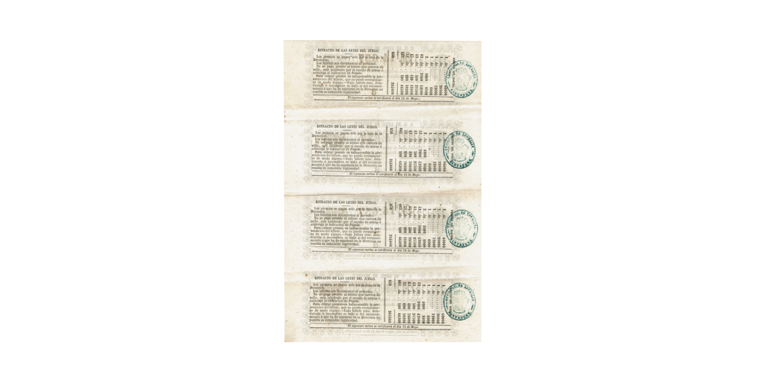 Real Lotería , Tira de 4 Octava parte drawn in Madrid on the twenty-eighth of April 1860, excellently preserved - worth forty reales de vellón