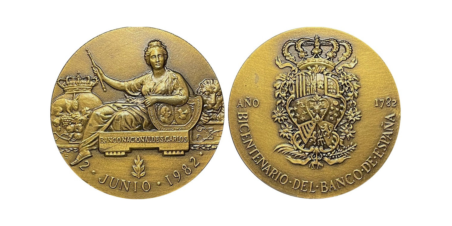Bicentenary Medal of the Bando de España / Banco de San Carlos. Minted by the F.N.M.T and Signature LH intertwined (López Hernández).