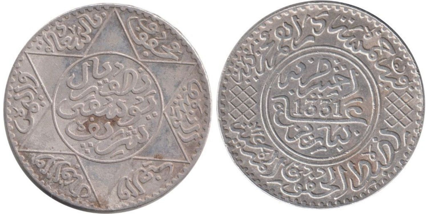 MOROCCO - K-032 - 1/2 RIALS 1331 , MBC silver