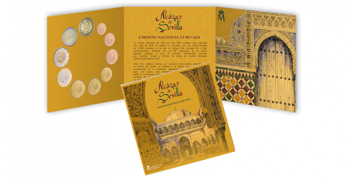 This issue includes the collection of the Spanish euro coins of the year 2024, including the €2 coins commemorating the 200th anniversary. National Police and the Cathedral, the Royal Alcazar and the Archive of the Indies in Seville.