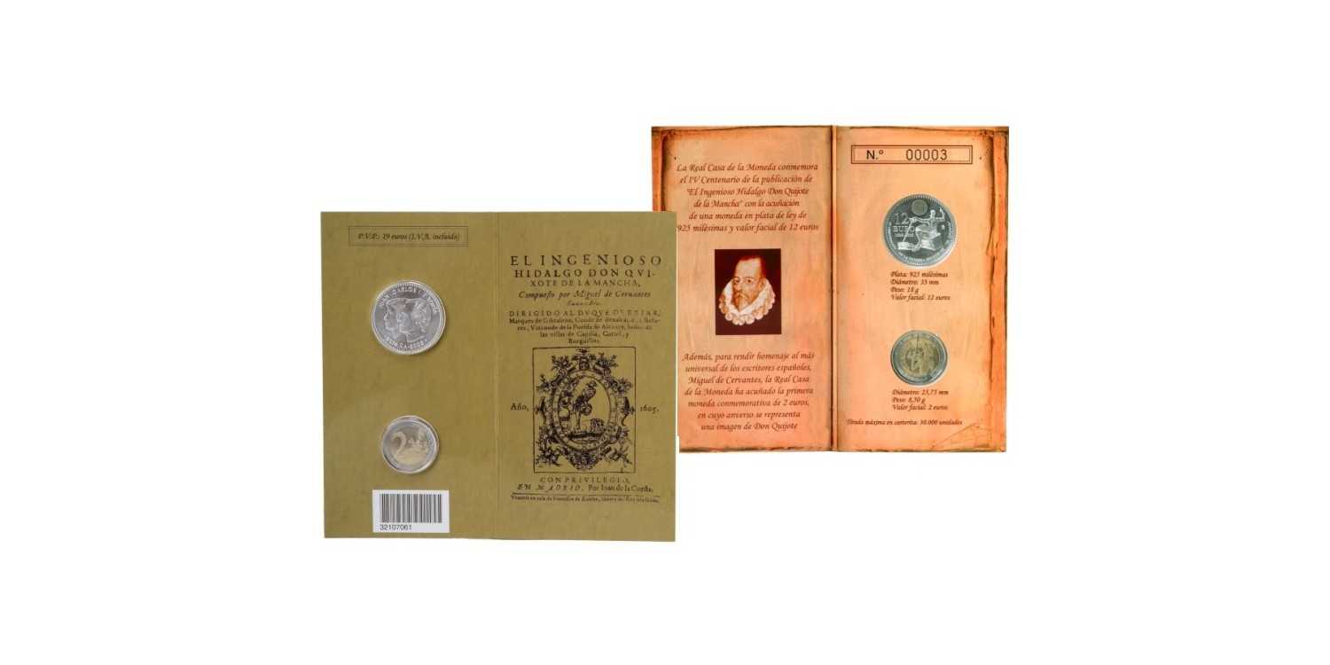 Official set of the F.N.M.T containing the 12 € and 2 € coins minted in 2005 in commemoration of the IV Centenary of the first edition of "El Ingenioso Hidalgo Don Quijote de la Mancha", by Miguel de Cervantes