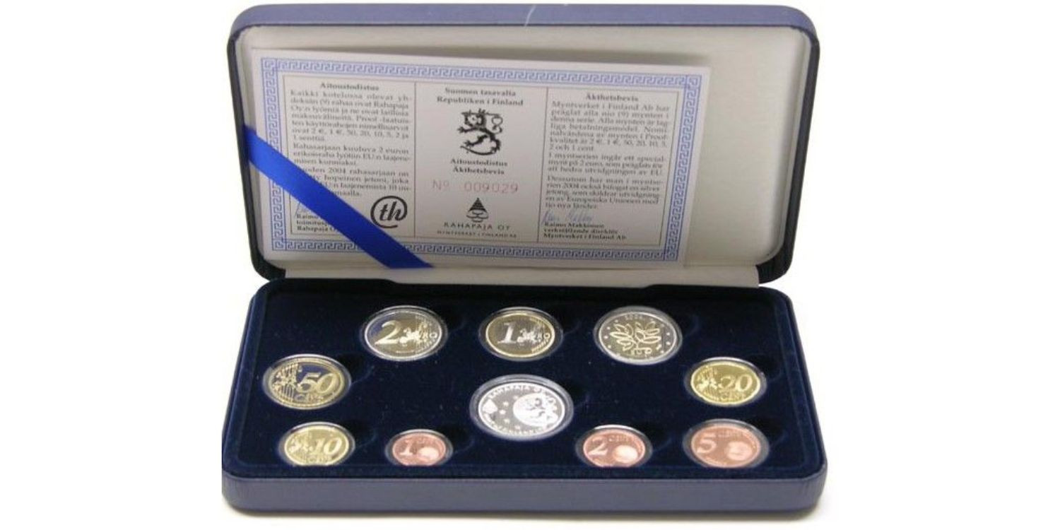 Official set from Finland including the 8 values minted in the year 2002 in Proof quality.