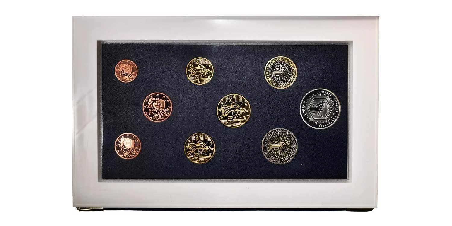 Official set of France including the 8 values minted in 2005 in PROOF quality plus the commemorative 5 euro silver coin