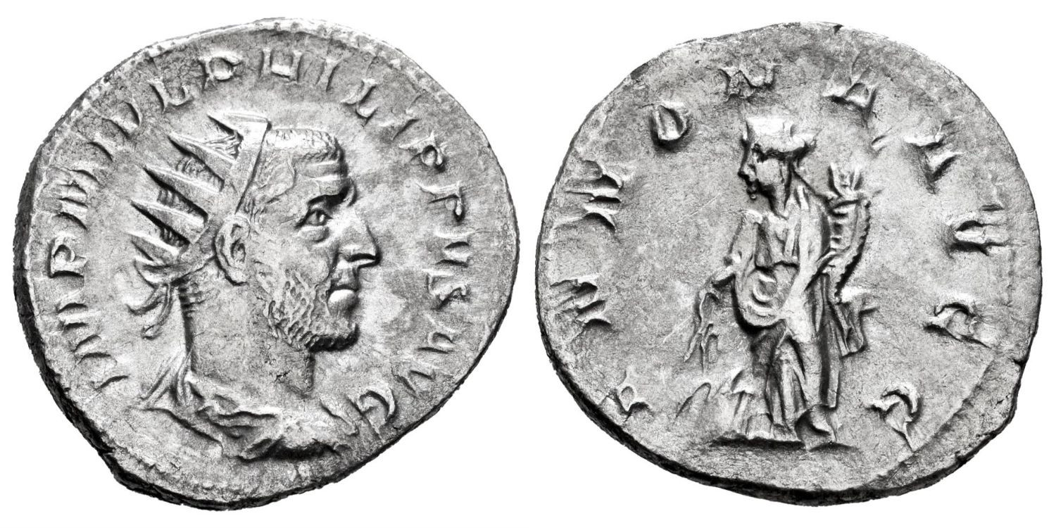 Silver (Ag) 3.58gm Anv: IMP. M. IVL PHILIPPVS AVG Rev: AMNONA AVGG