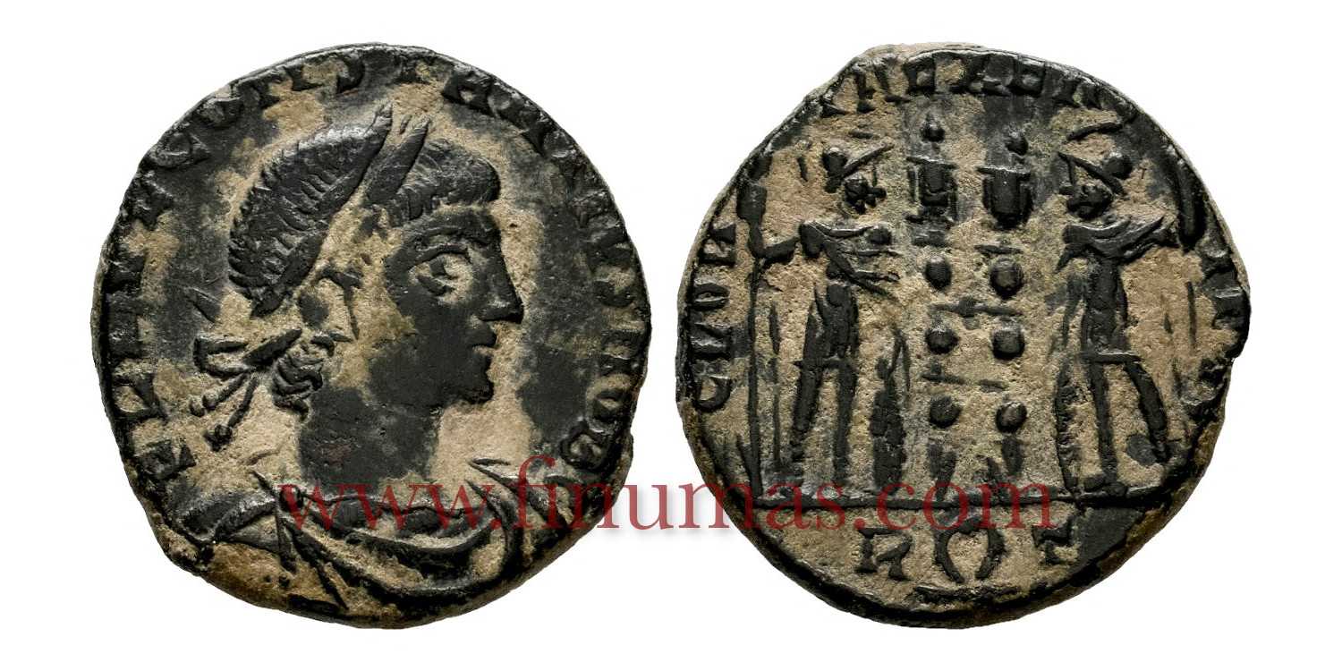 Constantine II, like Caesar, bronze follis. . GLORIA EXERCITVS/ROT 2,34 g. 17mm