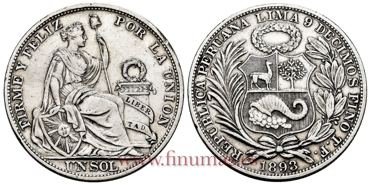 PERU - K-196 - 1 Sol 1893 TF - EBC