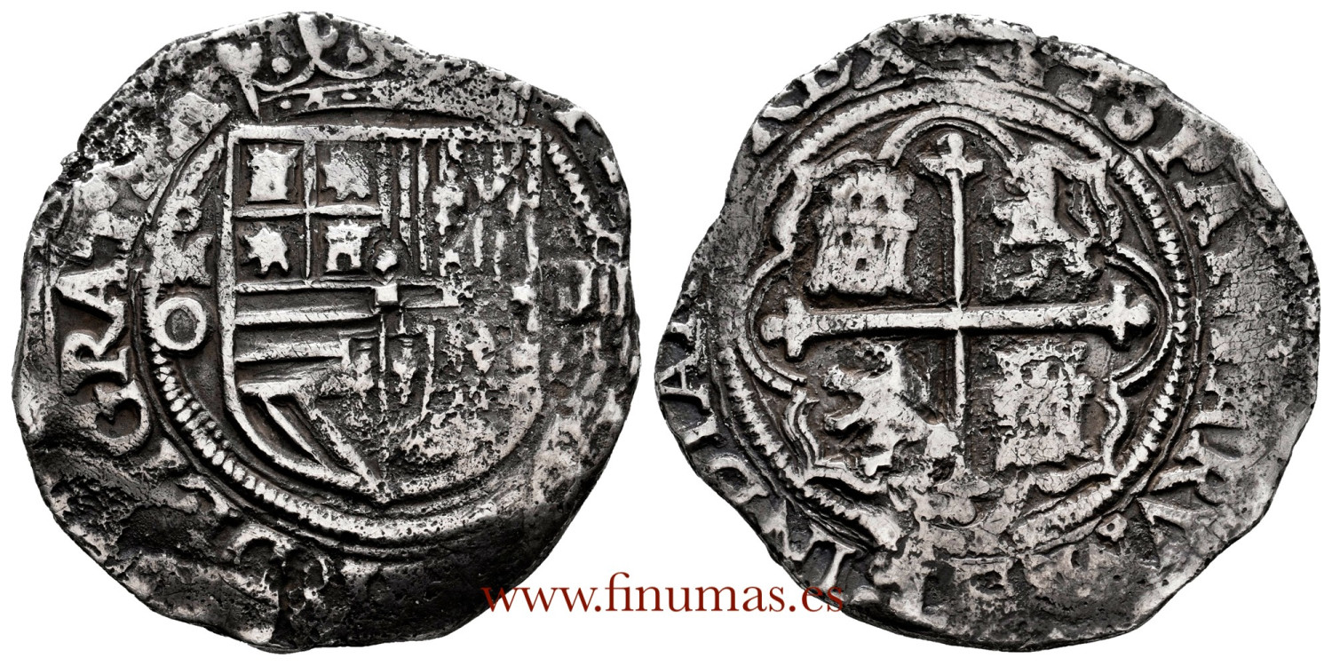 4 reales Felipe II. Mexico -O. Mint and assayer vertically left. Value on the right. Ag. 12'98gm ø33mm. Scarce