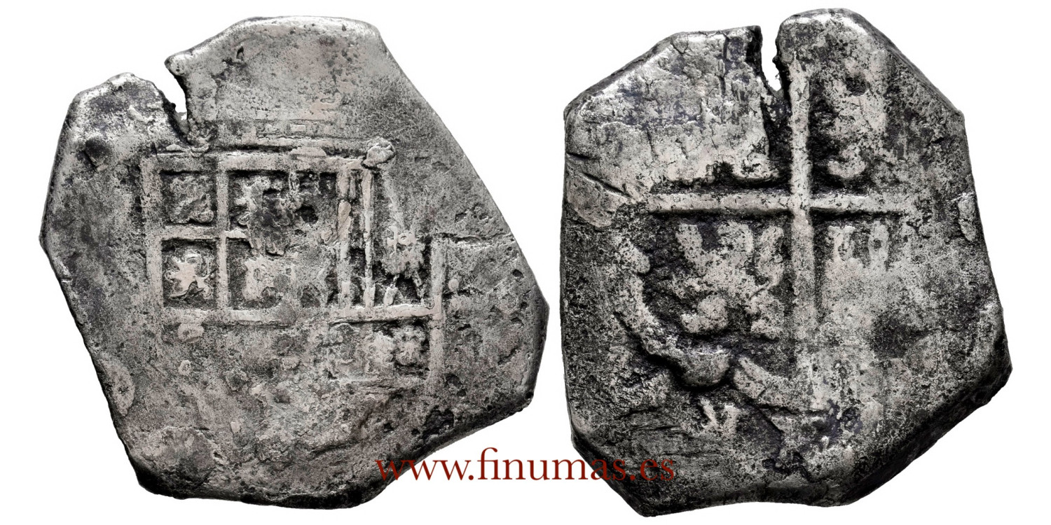 Felipe II? . 8 reales Macuquinos. Heavy erosions. Ag. 26,85 g.
