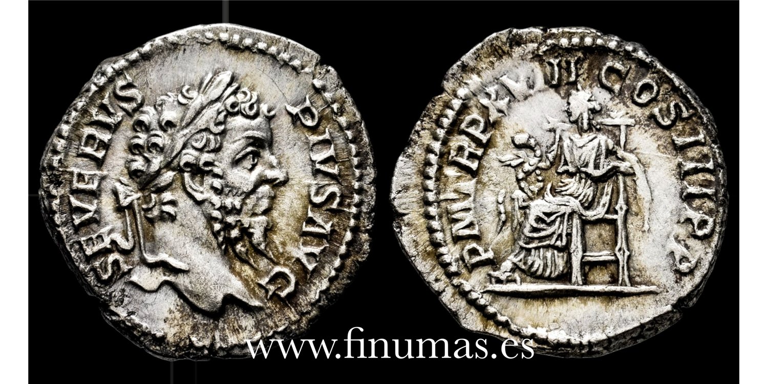 Septimio Severo Denario 210 d.C. Roma. Plata (Ag.) 3´40gm. Anv.: SEVERVS PIVS AVG. Cabeza laureada a la derecha. Rev.: P M TR P XVIII COS III P P. Salus sedente a la izquierda, alimentando serpiente que sostiene en su regazo. EBC. (Ric-IV 236)