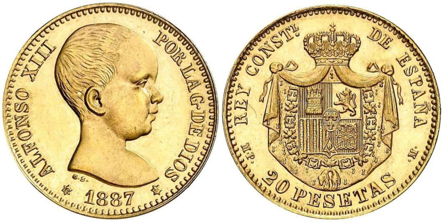 Official mint unit of 20 gold pesetas of Alfonso XIII. Year 1896 *19 61. Weight 6,46 grams.