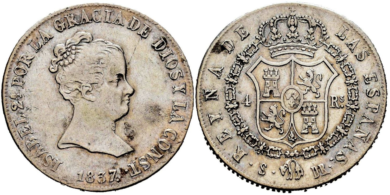 Cy16077.-ISABEL II - 4 Reales 1837 Sevilla D.R.-MBC