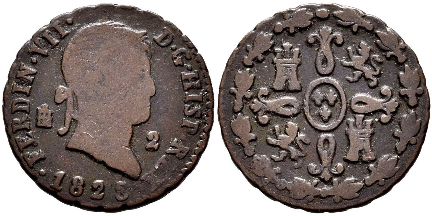 Cy13939.-FERNANDO VII -2 Maravedis 1828 Segovia - BC