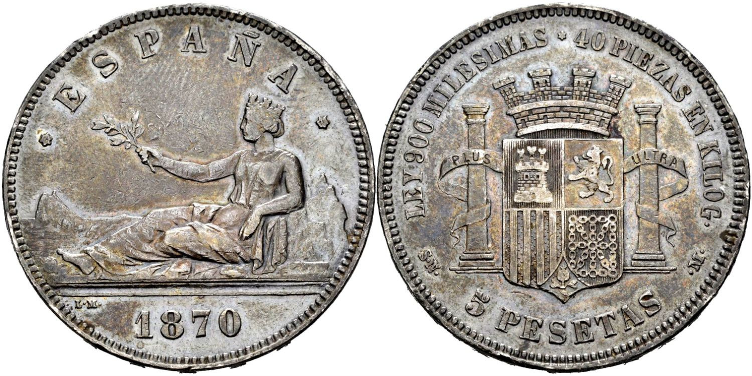 Cy16523h.- G.P Y I REPUBLICA 5 Pesetas 1870 (18-70) S.N.M.-EBC-