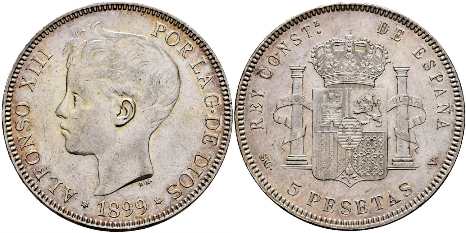Cy16708H.- ALFONSO XIII 5 Pesetas 1899(18-99) S.G.V EBC