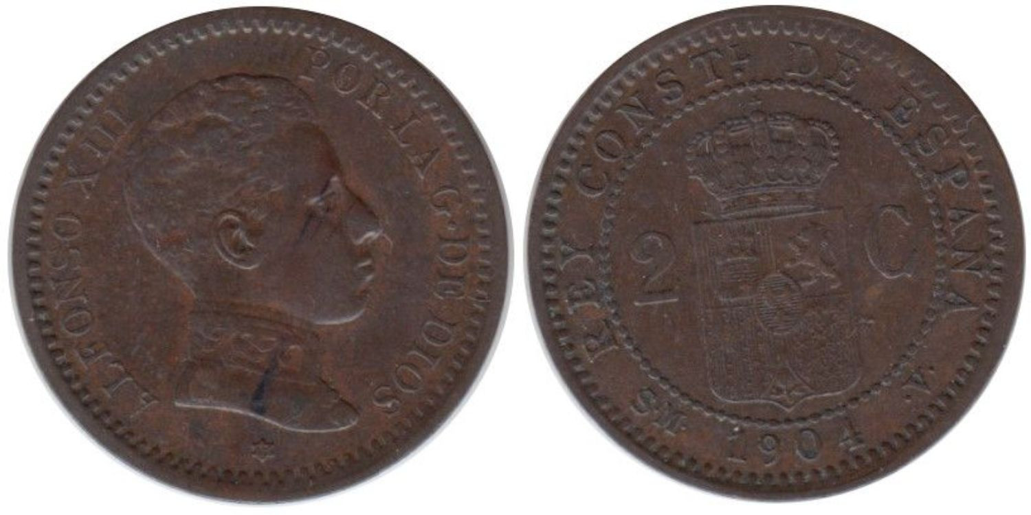 Cy16650E.-ALFONSO XIII - 2 Céntimos 1904 SMV, MBC