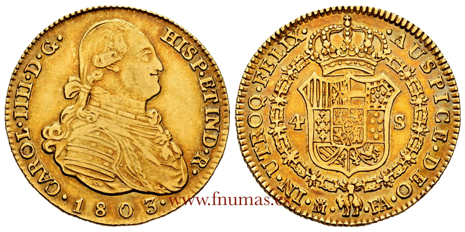 Cy13571.- CARLOS IV - 4 SHIELDS 1803 MADRID F.A. MBC+