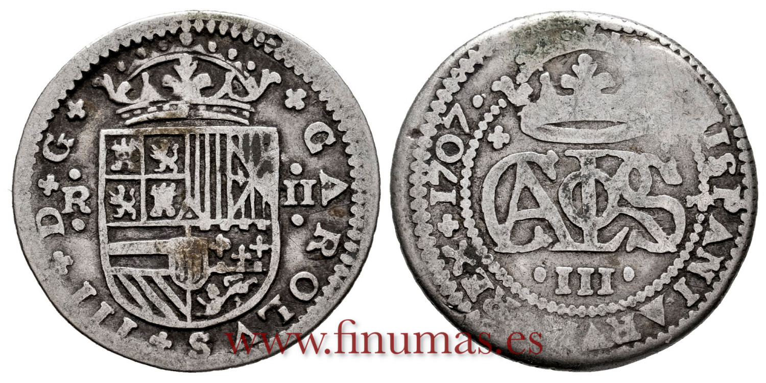 Cy07445.- CARLOS III - Pretendiente 2 Reales 1707 Barcelona, BC-