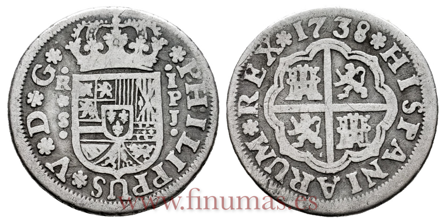 Cy07982.-FELIPE V - 1 Real 1738 Seville P.J.-BC