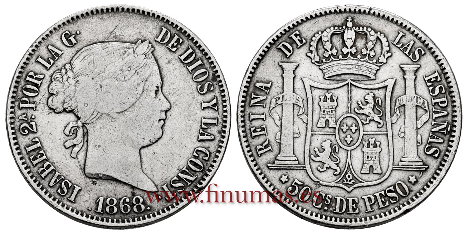 Cy16246.-ISABEL II - 50 Ctm. Weight 1868 Manila.-MBC
