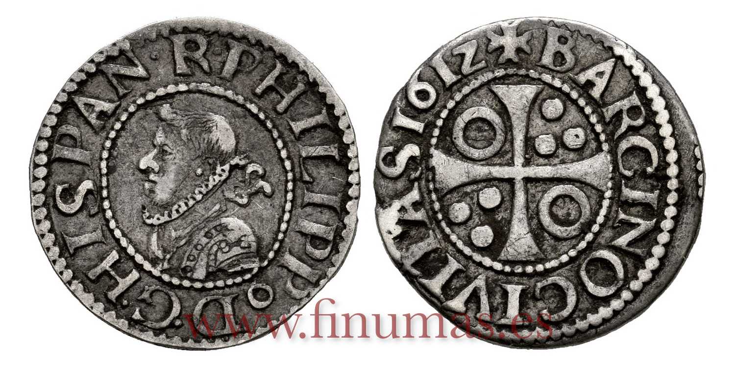 Philip III 1612. Silver (Ag) 1'65gm. ANV:PHILIPP D G HISPAN R. Rev.: BARCINO CIVITAS 161Z