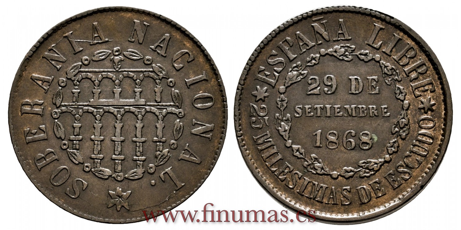 Cy16497.- G.P Y I REPUBLICA - 25 Milesimas Escudo 1868 - EBC.