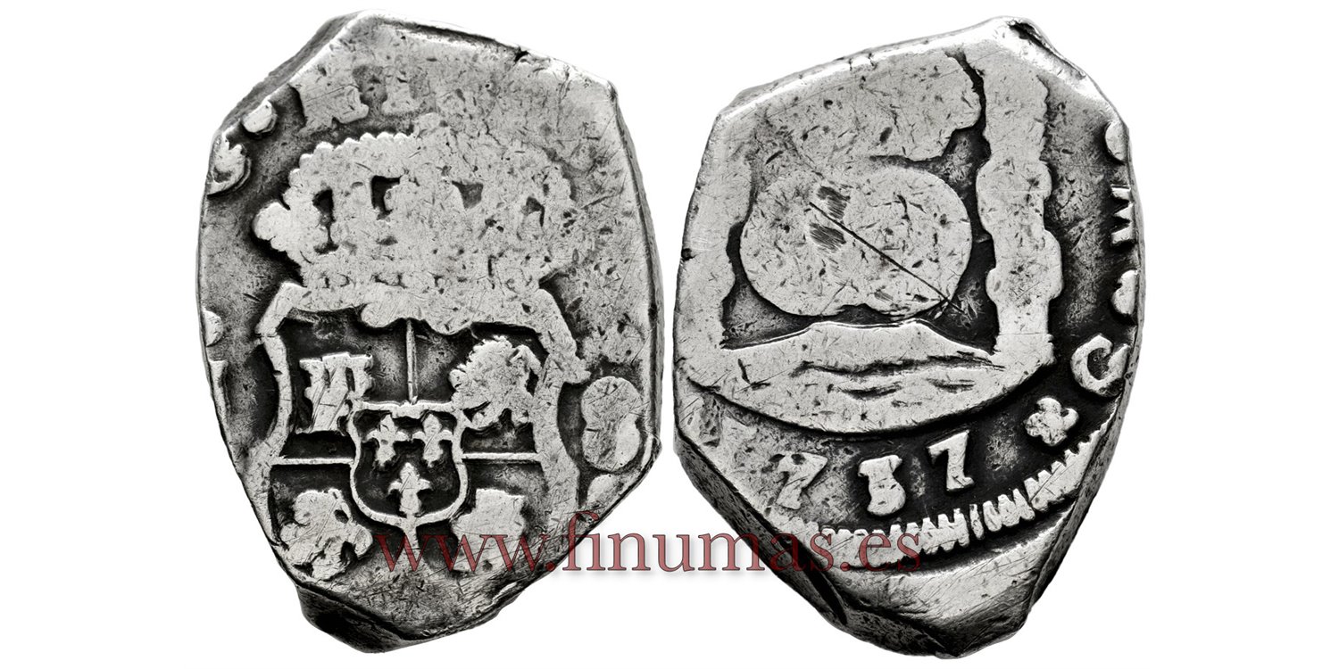 (Ag.) Plata, 26,75 gm. Visible Fecha completa, ceca y valor. Ensayador parcial. Calico 595