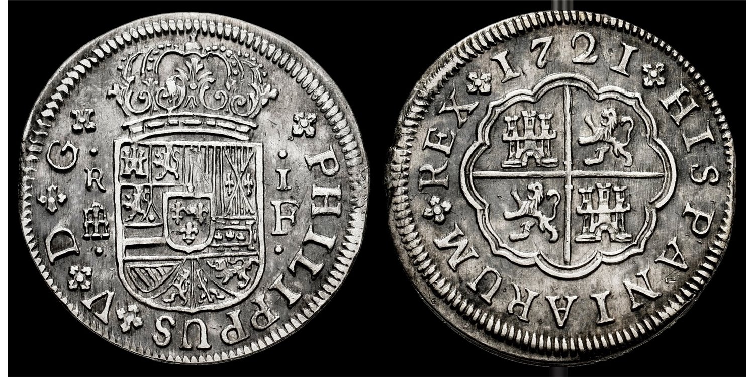 Felipe V 1 real 1721 Segovia F. . Ag. 2,93 g. EBC+. Tono sobre Brillo Original (Cal-623)