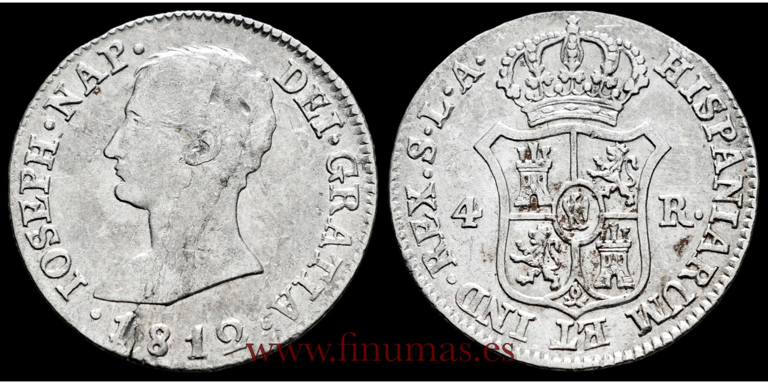 José Napoleón 4 reales 1812 Sevilla L.A.. Ag. 5,74 gm. BC+/MBC. Restos de Brillo Original (Cal-25).