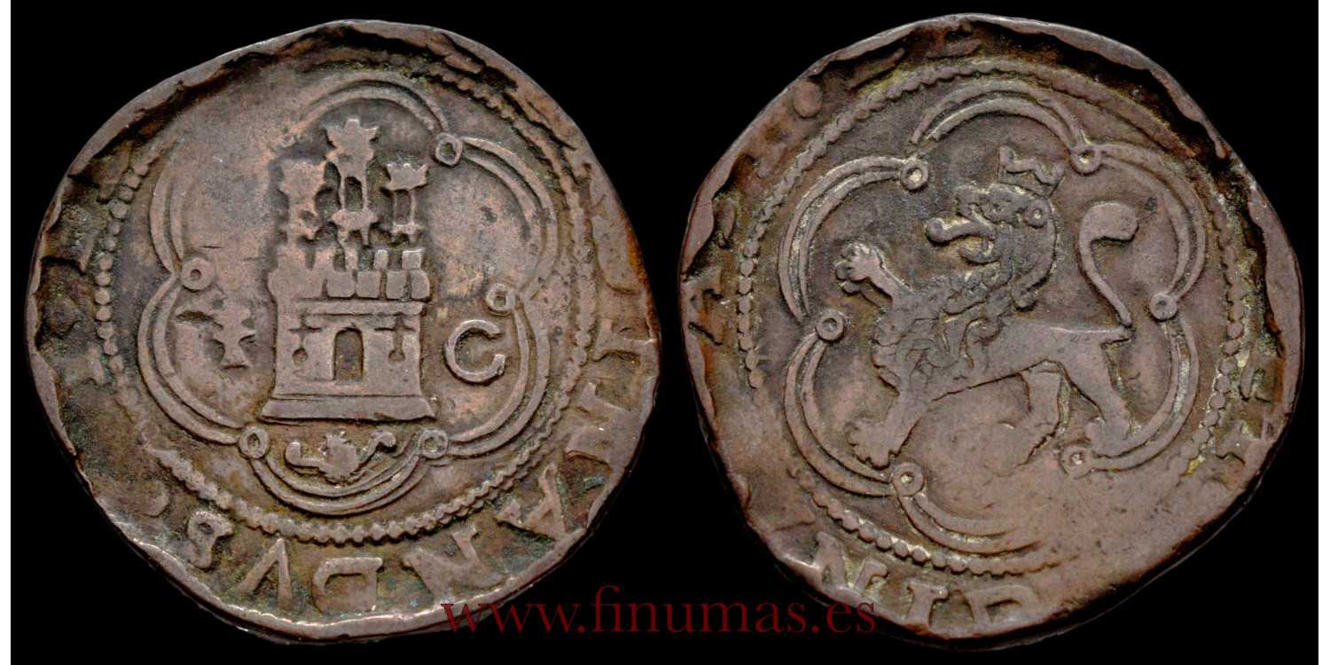C right and patriarchal cross to the left of the castle (Alonso Román) 1555/1566. Copper (Cu) 9,5gm.